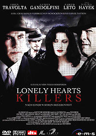 aus. Bald schon schrecken die vermeintlichen Tröster von Witwen und alternden Jungfern auch vor Mord nicht zurück, denn Martha kann es nicht ertragen, ihren Liebhaber in den Armen einer Anderen zu sehen. Ihre mit dem Blut Unschuldiger erkaufte Freiheit kann nicht von Dauer sein. Die beiden Cops Elmer Robinson und Charles Hildebrandt sind ihnen längst auf der Spur. Vor allem Robinson ist hinter ihnen her, wie der Teufel hinter der armen Seele. Erst vor Kurzem hat sich seine Frau das Leben genommen. Und mit der Verhaftung und Überführung der 'Lonely-Hearts-Killer' will er sein Gewissen reinwaschen. Fragt sich nur, ob es ihm gelingt, bevor Fernandez und Beck erneut zuschlagen. John Travolta (Elmer Robinson) ● James Gandolfini (Charles Hilderbrandt) ● Jared Leto (Ray Fernandez) ● Salma Hayek (Martha Beck) ● Scott Caan (Reilly) ● Laura Dern (Rene Fodie) ● Michael Gaston (D. A. Hunt) ● Bruce MacVittie (Eastman) ● Dan Byrd (Eddie Robinson) ● Andrew Wheeler (Detective Tooley) ● Alice Krige (Janet Long) |