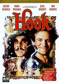 Star-Anwalt und firmiert unter dem Namen Peter Banning. Seine Frau und die Kinder Maggie und Jack bekommen ihn fast nie zu Gesicht. Aber das soll sich rächen, denn der böse Pirat Captain Hook hat noch eine Rechnung mit Peter offen. Also greift Hook an Peters doch verwundbarsten Punkt an: Er entführt seine Kinder. Da legt der Starjurist selbst sein Handy beiseite und versucht, die beiden wiederzubekommen. Aber wie? Die Fee Tinkerbell bietet ihm seine Hilfe an, auf die er sich aber zunächst nicht einlassen will. Schließlich folgt er ihr aber doch in die Märchenwelt 'Nimmerland' und lernt in einigen Abenteuern, wo der Schlüssel zum Erfolg liegt: Nur, wenn er sich wieder auf seine eigene Kindheit zurückbesinnt, wird Peter Jack und Maggie wieder heil nach Hause bringen können. Dustin Hoffman (Captain Hook) ● Robin Williams (Peter Banning) ● Julia Roberts (Tinkerbell) ● Bob Hoskins (Smee) ● Maggie Smith (Granny Wendy) ● Caroline Goodall (Moira Banning) ● Charlie Korsmo (Jack 'Jackie' Banning) ● Amber Scott (Maggie Banning) ● Laurel Cronin (Liza, Wendy's Housekeeper) ● Phil Collins (Inspector Good) ● Arthur Malet (Tootles) ● Isaiah Robinson (Pockets) ● Jasen Fisher (Ace) ● Dante Basco (Rufio) ● Raushan Hammond (Thud Butt) |